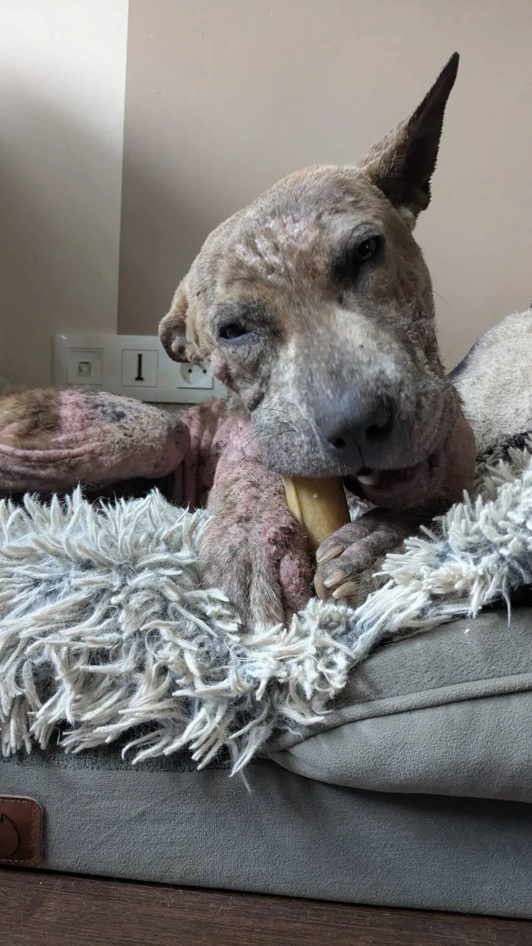 Ce qui rend l’histoire de Mork si touchante, c’est la rapidité de ses progrès malgré un passé douloureux. Son état de santé s’améliore nettement : sa peau, auparavant infectée, commence à guérir. Psychologiquement, il reste prudent, notamment à l’extérieur ou face aux inconnus, mais il avance chaque jour, porté par la patience et la douceur de sa nouvelle famille. Une transformation qui prouve à quel point l’amour et l’attention peuvent changer la vie d’un animal traumatisé.