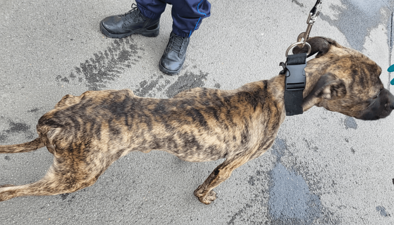 Tout part d'un signalement de la police municipale. Une alerte comme il en existe malheureusement trop, mais qui va mener à une découverte particulièrement marquante. En arrivant sur les lieux, les agents font face à une scène difficilement soutenable : un Stafford croisé marron, dont l'apparence physique trahit des semaines, voire des mois de négligence.