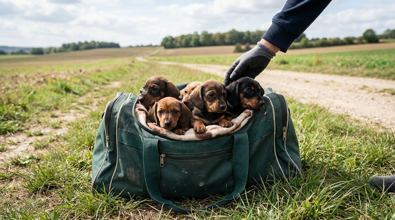C'est lors d'une promenade aux abords d'un bassin à Brétigny-sur-Orge que le destin de cinq chiots a basculé. Intrigués par un sac de sport qui s'agitait au sol, des passants ont eu le réflexe de l'ouvrir. À l'intérieur, ils ont découvert cinq jeunes Teckels entassés, luttant pour respirer dans cet espace clos et étouffant. Immédiatement libérés, les petits animaux, bien que terrifiés et déshydratés, ont été transportés en urgence chez un vétérinaire pour recevoir les premiers soins indispensables à leur survie.