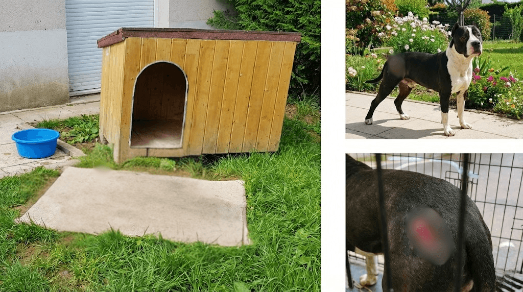 L'histoire de Mani a débuté par un signalement déchirant. Ce chien de type Staff a été découvert dans un jardinet du Plessis-Trévise, attaché jour et nuit à un piquet rouillé. Les sauveteurs ont trouvé un animal d'une maigreur extrême, le corps couvert de plaies profondes et d'escarres, vivant au milieu de ses propres déjections dans une insalubrité totale. Plus grave encore, le pauvre animal présentait des mutilations illégales et subissait des violences physiques régulières, des témoins ayant rapporté des coups d'une violence inouïe.